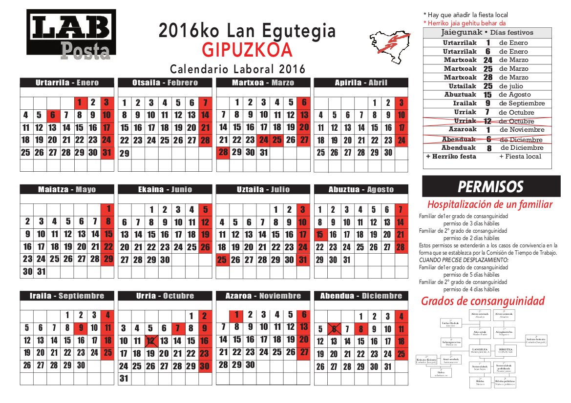 Calendario 2025 Gipuzkoa.